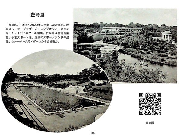 本書は「大東京三十五区 百五十景写真帳」(尚美堂写真部 1932年10月1日発行)収録の写真に解説を加え、さらに現在のGoogleマップにリンクするQRコードを添付したものです。スマートフォンでQRコードを読み込み、現在の場所を確認したり、ストリートビューに切り替えることで、現在の風景と比較することができます。