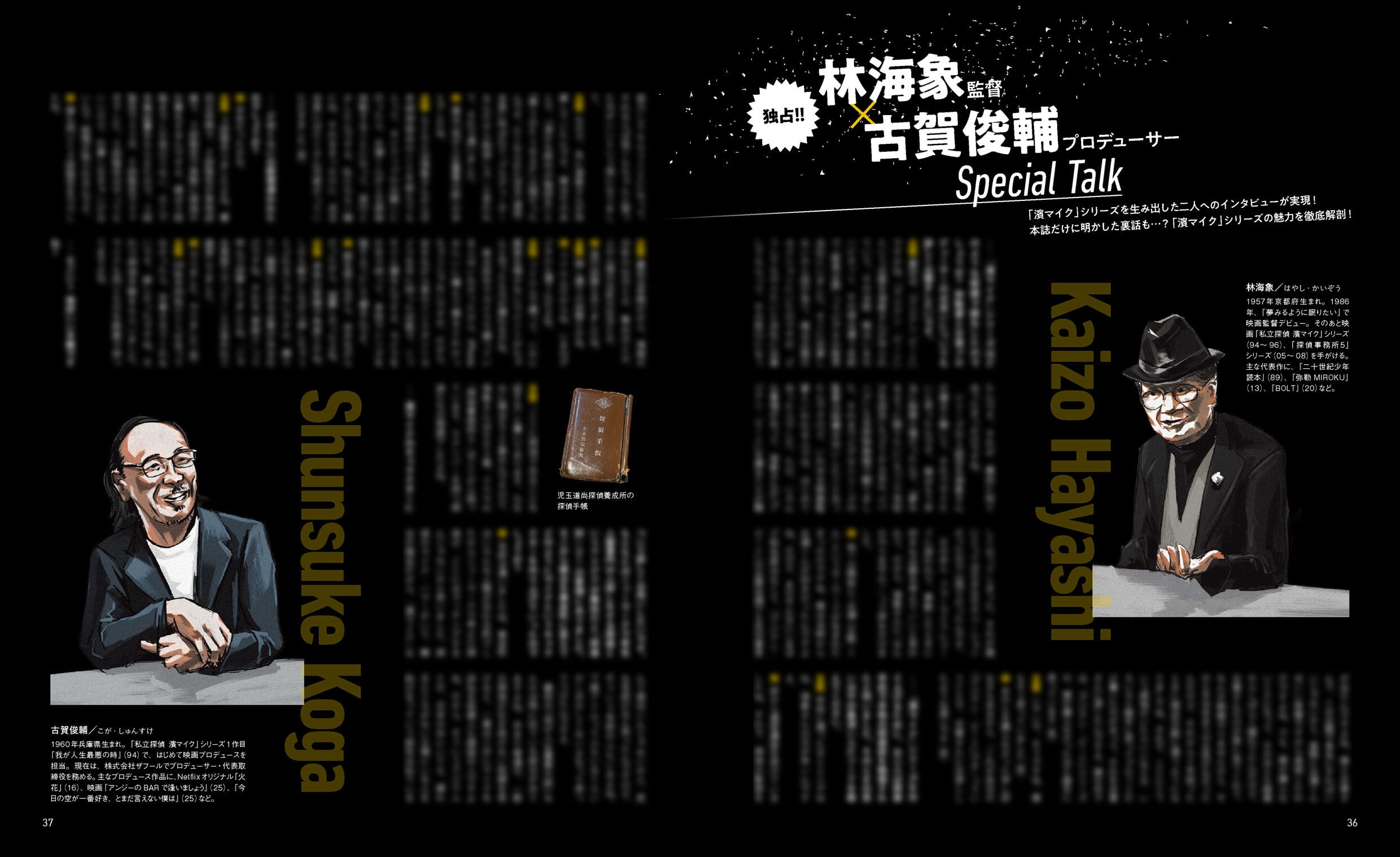 本書では、「私立探偵 濱マイク」シリーズを手がけてきた林海象監督の特別寄稿を掲載し、作品に込めた想いや制作の背景について語っていただきました。また、林海象監督とプロデューサーの古賀俊輔氏によるスペシャルインタビューも実現し、シリーズ誕生の裏話や制作秘話を本誌だけに独占公開!